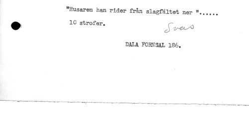 //// "Husaren han rider från slagfältet ner "...... //// * 1C strofer. ^ //// DALA FCRNSAL 186. //// ——----,——^—^-----_------,----- _ _ ^ //// ' —""—"T-**-*"* —" ********-- ////