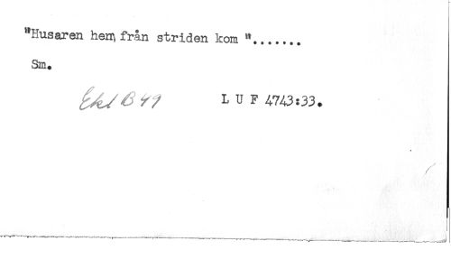 //// "Husaren herr, från striden kom "....... //// Sm. //// ^./uV^y/ LUF4-7A3:33. //// * ////
