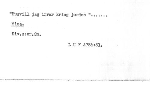 //// "Husvill jag irrar kring jorden "....... //// Visa. //// Div. ss nr. Sm. //// L U F 4786:81. ////