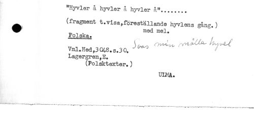 //// Hyvler a hyvler å hyvler å"........ //// ^ (fragment t.visa,föreställande hyvlens gång.) //// med mel. //// Polska. //// Vml.Hed,3Q48.s.30. ^ //// Lagergren //// (Polsktexter.) //// ULMå. //// .. ——------—----—.....—.....-—.—_____^ __ //// ^ — —. ^—t—<i---^^^-----—------—---—----—--- ////