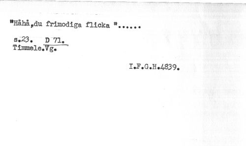 //// * ** .M-. — - //// "Håhåydu frimodiga flicka "...... //// s.23. D 71. //// Timmele^g*" ////