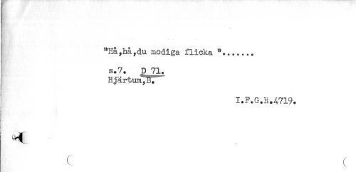 //// 'j' * * ... .... //// *Hå,hå,du modiga flicka "....... //// s.7. D 71. //// Hjärtum,BlT //// I.F.G.H.4719. //// ! //// ( ( ////