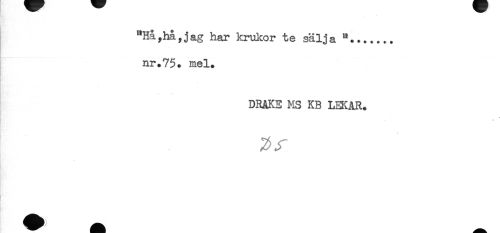 //// "Hå,hå,jag har krukor te sälja ...... //// nr.75. mel. //// DRAKE MS KB LEKAR. //// ^ Jf ////