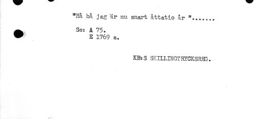 //// "Hå hå jag är nu snart åttatio år "....... //// ^ Se: A 75. //// * E 1769 a. //// * //// KB': S SKILUNGT KYCKSRB3. ////