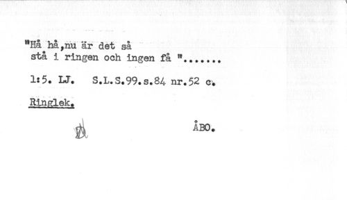 //// ' . '' //// "Hå hå,nu är det så //// stå i ringen och ingen få *....... //// 1:5. LJ. S.L.S.99.S.S4 nr.52 c. //// Ringlek. //// ^ ÅBO. ////