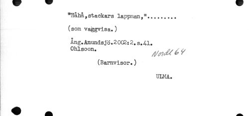 //// **Håhå , stackars lappman //// (som vaggvisa.) //// Ång.Anundsj3.20CB:2.s.41. //// (Barnvisor.) //// ULMA. ////