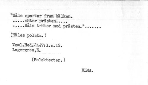 //// -- --- . ....' r* ' ..,.-.. . * .-- //// "Håle sparkar fram kälken. //// .....möter pi€sten..... //// ^....Håle träter med pi€sten."....... //// (Håles polska.) //// Vsml.Hed. 2447:1.s.12. //// Lagergren,E. //// (Polsktexter.) //// ULMA. : ////