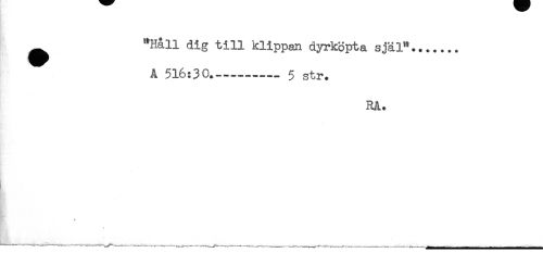 //// ^ "Håll dig till klippan dyrköpta själ"....... //// A 516:30-----5 str. //// RA. ////