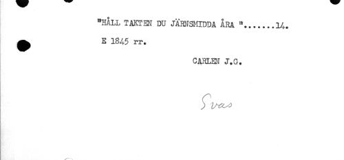//// "HÅLL TAKTEN DU JAHNSHIDDA ÅRA "....... //// ^ E 18A5 rr. //// CARLBN J.G. ////