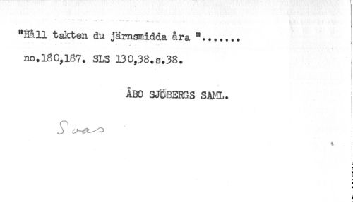 //// ** * ...- //// "Hall takten du jämsmidda åra "....... //// T* - * //// no.180,187. SLS 130,38.s.38. //// ÅBO SJÖBERGS SAML. //// J //// : //// t //// i //// t //// ' < //// H //// S ////