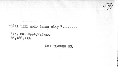 //// "Håll till godo denna sång //// 3:4. MO. UpDt.Wefvar. //// R5,186,339. //// ÅBO RAi^CKEN MS. //// ! //// i //// t //// ) //// H //// a //// = //// H //// i= //// i- ////