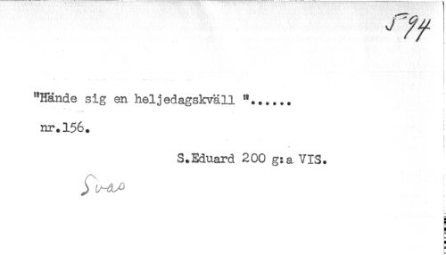 //// t //// ^Hände sig en heljedagskväll //// nr.156. //// t //// < //// + ! //// S.Eduard 200 g:a VIS. //// k //// ) //// 5 ////