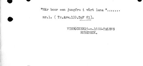 //// ' "Här boor een jungfru i vårt lana //// t //// ^ nr.l. ( Tr.Arw.133.DgF 81^). //// VIS3dCKER15-o.l60CLTH.WS //// RUDEBECK. //// K //// * ////
