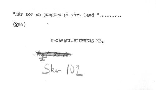 //// "Här bor en jungfru på vårt land "......... //// (SS6) //// H-C AV/ULL-ST EPHENS KB. ////