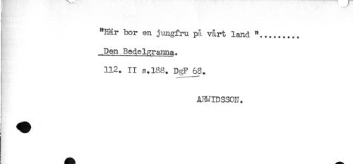 //// "Här bor en jungfru på vårt land ........ //// Den Bedelgranna. //// 112. II s.188. DgF 68. //// AWIDSSON. ////
