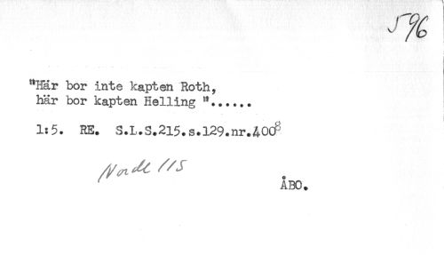 //// ...... . . - //// "Här bor inte kapten Roth, //// här bor kapten Helling "...... //// 1:5. RE. S.L.S.2l5.s.l29.nr.A0(f //// ^ ABO. ////