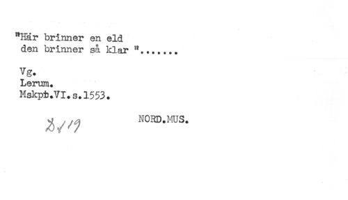 //// "Ilar brinner en eld //// den brinner så klar //// < //// Vg. //// Lerum. //// Mskpt.VI.s.1553. //// ^ ^ NORD.MUS. ////