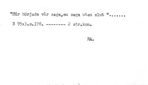 //// "Här började vår saga,en saga utan slut //// B 95:3.s.l78.---2 str.kom. //// Rå. ////