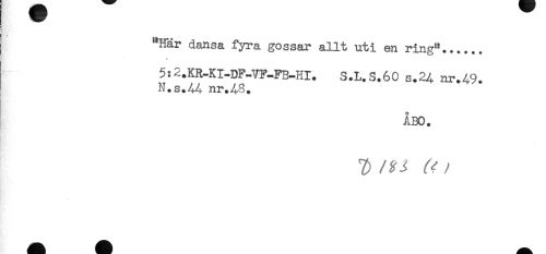 //// ! //// "Här dansa fyra gossar allt uti en ring"...... //// 5:2.KR-KI-DF-VF-FB-HI. S.L.S.60 s.24 nr.49. //// N.s.^4 nr.^8. //// ÅBO. //// T) / ////