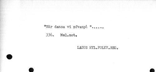 //// "Här dansa vi pfvanpå //// rEM^ //// 336. Mel.not. //// LAGUS NYL.FOLKV.RBG. ////