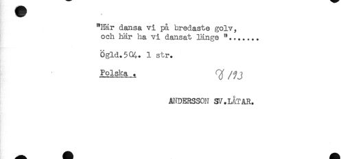 //// "Här dansa vi på bredaste golv, //// och här ha vi dansat länge "....... //// Ögld.5%. 1 str. //// Polska . /^j //// ANDERSSON SV. LAT AR. ////