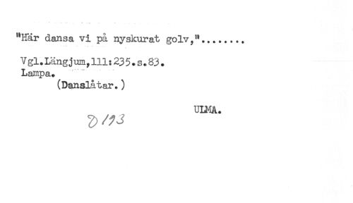//// "Här dansa vi på nyskurat golv,"........ //// V gl.Längj um, 111:23 5.s+83. //// Lampa. //// (Danslåtar.) //// ULMA. ////