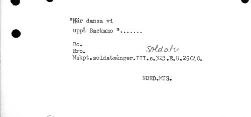 //// "Här dansa vi //// ^^ uppa Backanio //// BO. ^ . //// Mskpt.soldatsånger.III.s.323.E.U.2504,0. //// < //// NORD .HU3. //// - ////