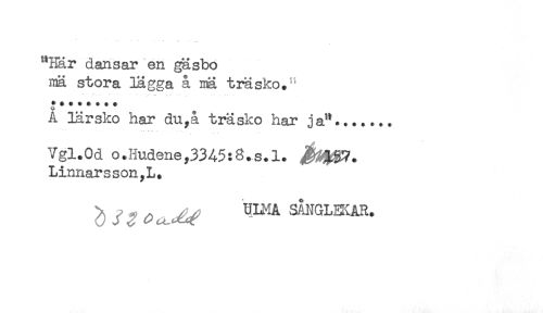//// "Här dansar en gäsbo //// ma stora lägga å mä träsko.^ //// + + * + * + * * //// A lärsko har du,å träsko har ja"....,.. //// Vgl.Od oJiudene;3345:8.s*l. //// Linnarsson^L. ////