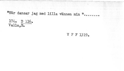 //// \ //// " < //// "Här dansar jag med lilla vännen min "........ //// 174. D 116. //// Valla,K //// V F F 1319. ////