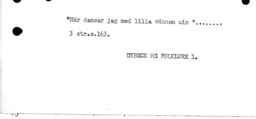 //// "Här dansar jag med lilla vännen min "........ //// ^ 3 str.s.163. //// DYBECK MS FOLKLORE 1. //// t //// . --- ---—-------—---—-----,---^___,,___ ^ ////
