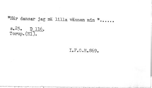 //// "Här dansar jag ma lilla vännen min "...... //// t //// s.25. D 116. //// Torup.(Hl). //// I.F.G.H.869. ////