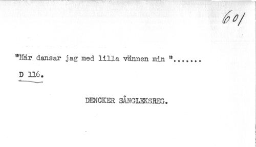//// "Har dansar jag med lilla vännen min "....... //// D 116. //// DENCKEH SÅNGLEKSREG. //// < //// t //// t ////