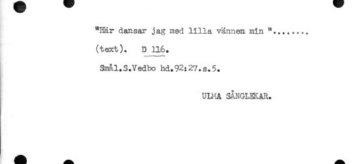 //// "Här dansar jag med lilla vännen min "........ //// (text). D 116. //// Smål.S.Vedbo hd.92:27.s.5. //// ULMA SÅNGLEKAR. ////