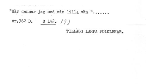//// "Här dansar jag med min lilla vän "....... //// * . - - -tt ! //// nr.362 D. _D^192. //// TILLÄGG LAMPA FOLKLEKAR. ////