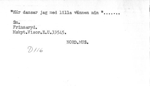 //// < .. -. . -...... . .. //// "Här dansar jag med lilla vännen min //// Sm. //// Frinn aryd. //// Ms^t.Visor.E.U.33545. //// t //// NORD. ms. //// - ////