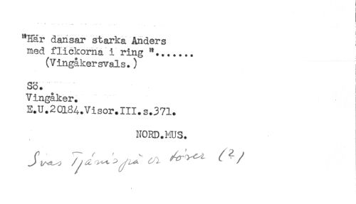 //// f //// "Har dansar starka Anders ] //// med flickorna i ring "....... //// (Vingåkersvals.) //// ! //// ! //// ) //// Sö. //// Vingåker. //// E.U.20l84.Visor.III.s.371. //// NORD.MUS. ////
