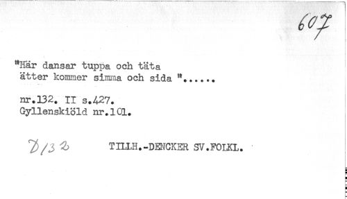 //// "Här dansar tuppa och täta //// ätter kommer simma och sida "...... //// nr.132. ir s.A27. //// Gyllenskiöld nr.101. //// ^ TIL1H.-DMCKER SV.FOIXL. //// H //// H //// H ////