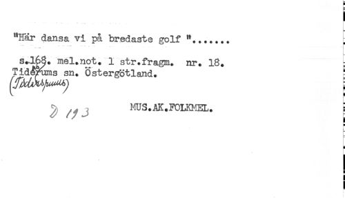 //// ! //// "Här dansa vi på bredaste golf - //// M —. ' //// r //// mel.not. 1 str.fragm. nr. 18. //// Tid^ums sn. Östergötland. ^ //// = //// ; ^,. HUS.AK.FOLKMEL. g //// a //// i //// t //// ! //// ] ////