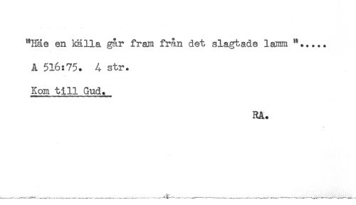 //// "Häe en källa går fram från det slagtade lamm "..... //// A 516:75. 4 str. //// Kom till Gud. //// RA. ////