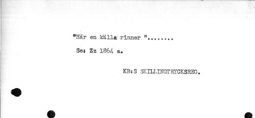 //// T //// "Här en källa rinner //// ! //// Se: Zz 1864 a. //// KB:S SKILLINGTRYCKSRBG. ////
