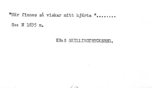 //// "Här finnes så viskar mitt hjärta //// Se: N 1835 m. //// KB:S SKILLINGTRYCKSREG. ////