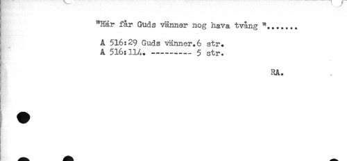 //// "Här får Guds vänner nog hava tvång //// A 516:29 Guds vänner.6 str. //// A 516:114. ----5 str. //// RA. ////