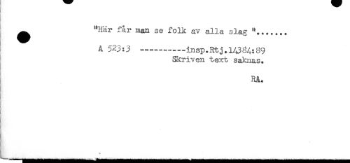 //// I ^ får man se folk av alla slag "....... //// A 523:3 ..........insp.Rtj.1^384:89 //// Skriven texrt saltnas. //// RA. ////