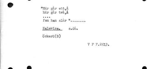 //// "Här går ett,å //// 1 * + O t o o //// har gar tva,a //// * * + * //// fem han slår //// Halevisa. s.46. //// Cckerö(B) //// V F F.2C13* ////