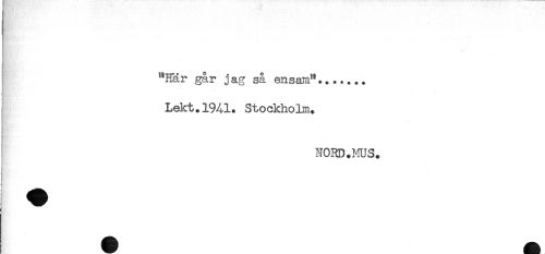 //// "Här går jag så ensam"*..*... //// * //// { //// Lekt.1941. Stockholm. //// i //// NORD.HUS. ////