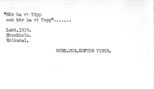 //// ***'*" ' - * ' -.*: ** //// "Här ha vi Tipp ' , //// och här ha vi Topp"....... //// s, i, //// Lekt.1939. //// Stockholm. //// Eriksdal. //// NORD.MUS.KOPIOR VISOR. //// t //// t ////