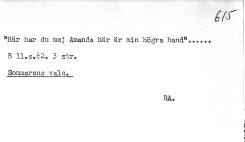 //// "Här har du mej Amanda här är min högra hand"...... //// B ll.s.62. 3 str. //// Sommarens vals. //// < //// i //// I //// RA. //// i //// H //// = ////
