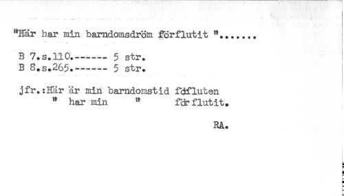 //// "Här har min barndomsdröm görflutit //// . .. . . - .......... i //// ... . //// ! //// B 7.S.110.------5 str. //// B S.s.265.------ 5 str. //// * ** ... ... //// jfr.:Här är min barndomstid föfluten //// " har min " fä-flutit. //// RA. //// < //// i //// ! //// t //// ! //// i //// ; ////