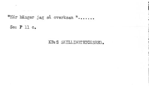 //// j //// - * tT * ............. //// "Här hänger jag så overksam ; //// Se: P 11 c. t //// KB:S SKILLINGTRYCKSRm. //// i //// - //// i //// r ////