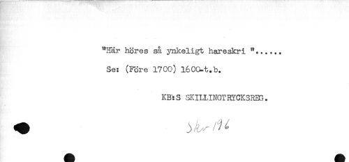 //// "Här höres så ynkeligt hareskri "...... //// Se: (Före 1700) 1600-t.b. //// KB4S SKILLINGTRYCKSRm. ////